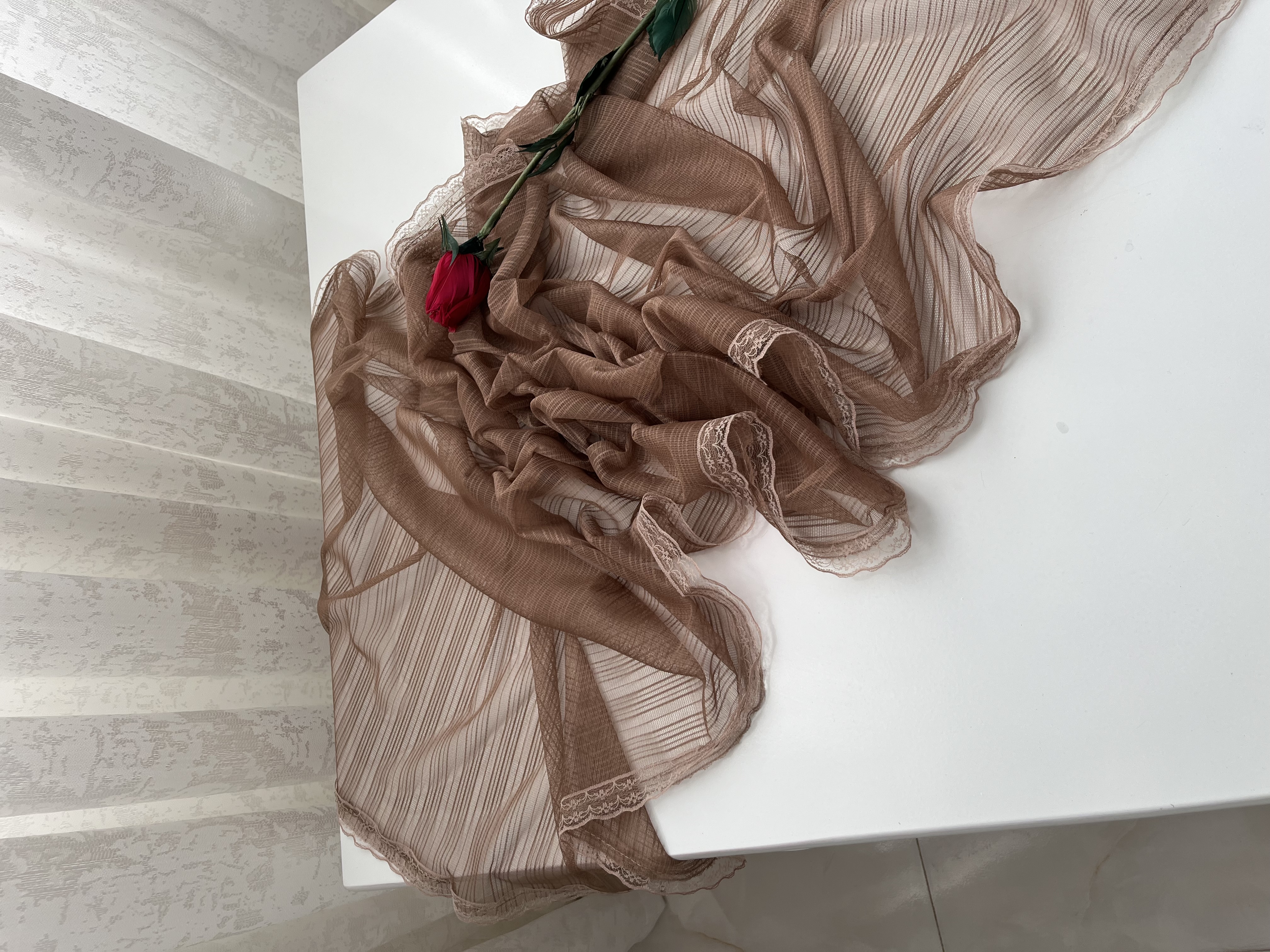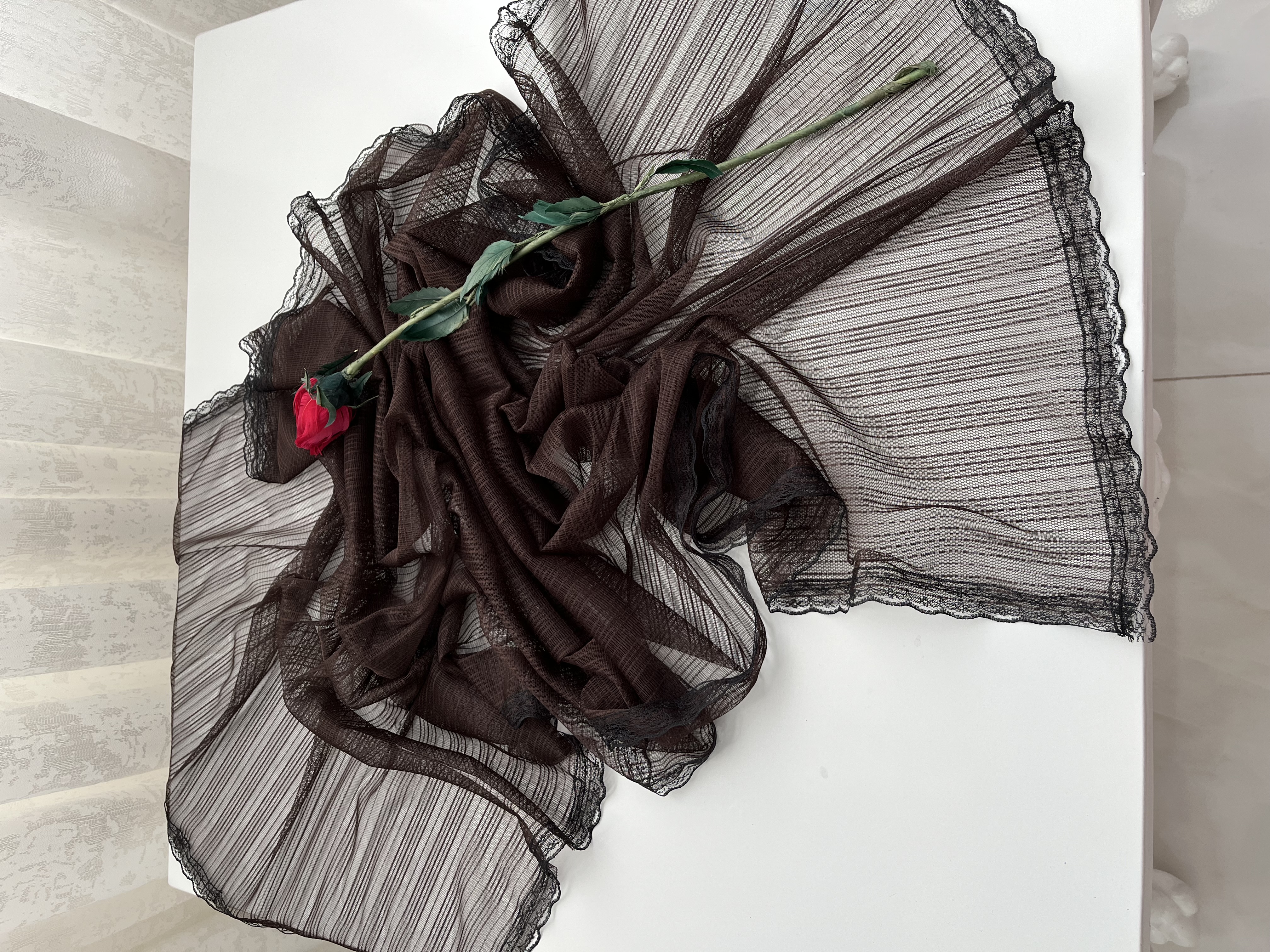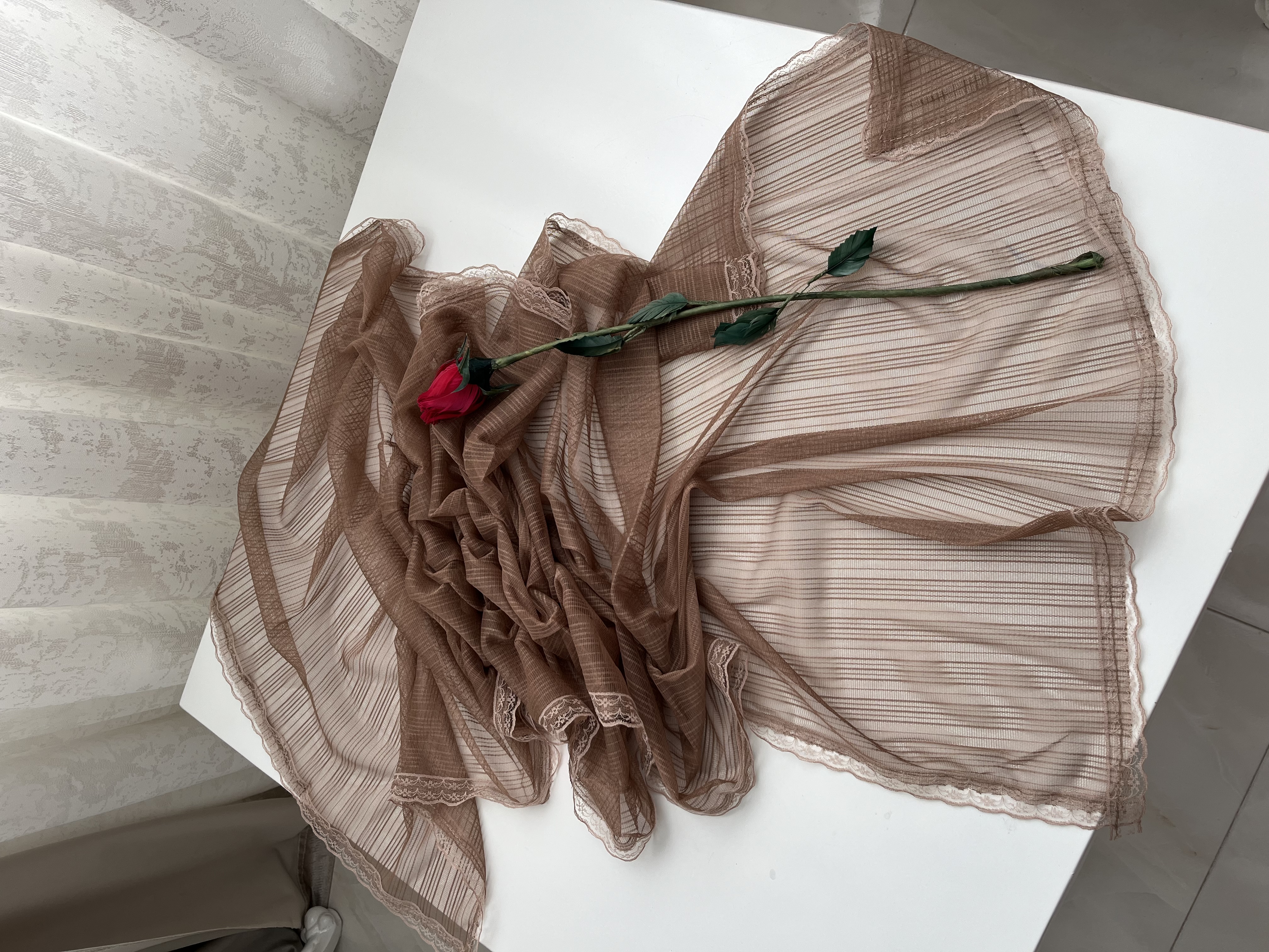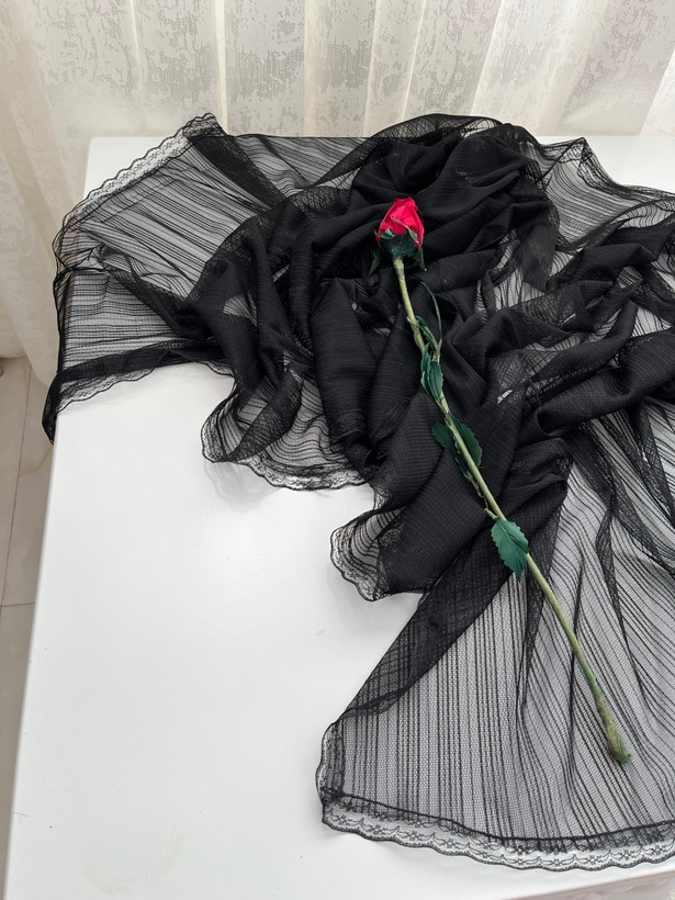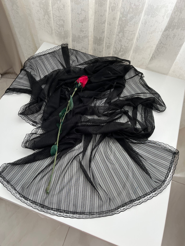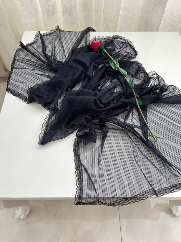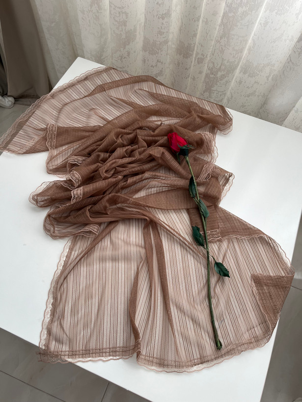 - دور تا دور شال دانتل دوخته شده است.