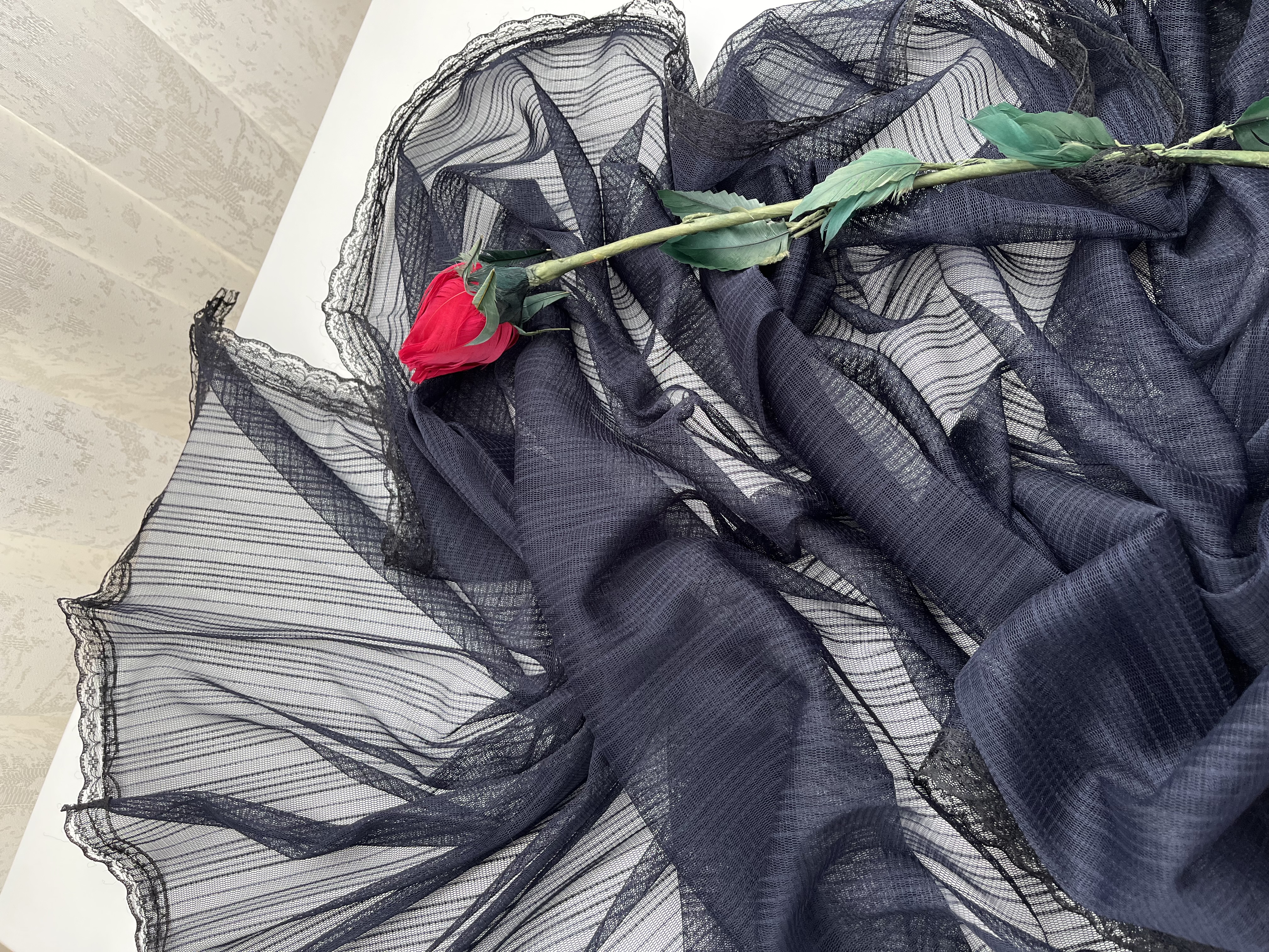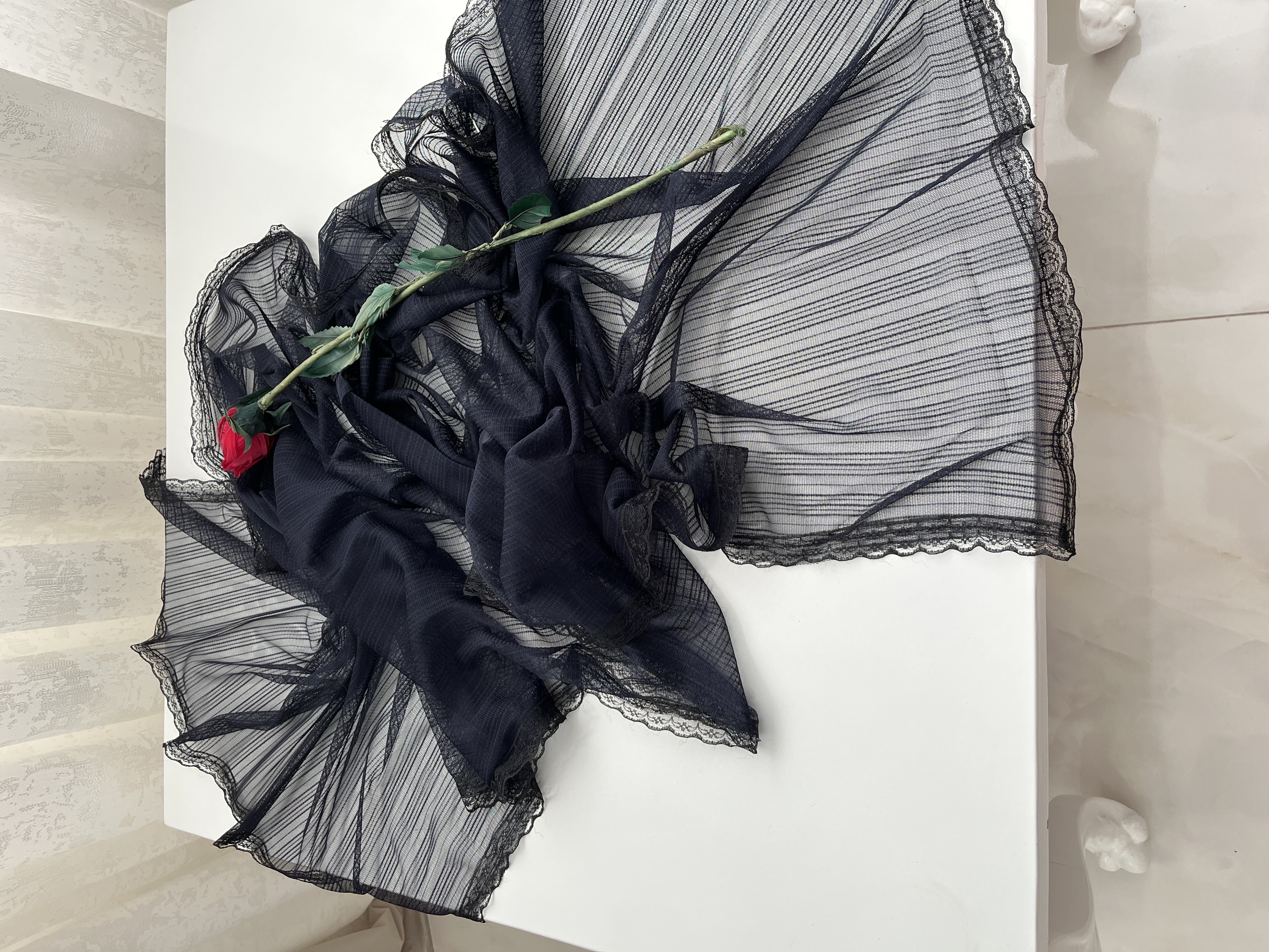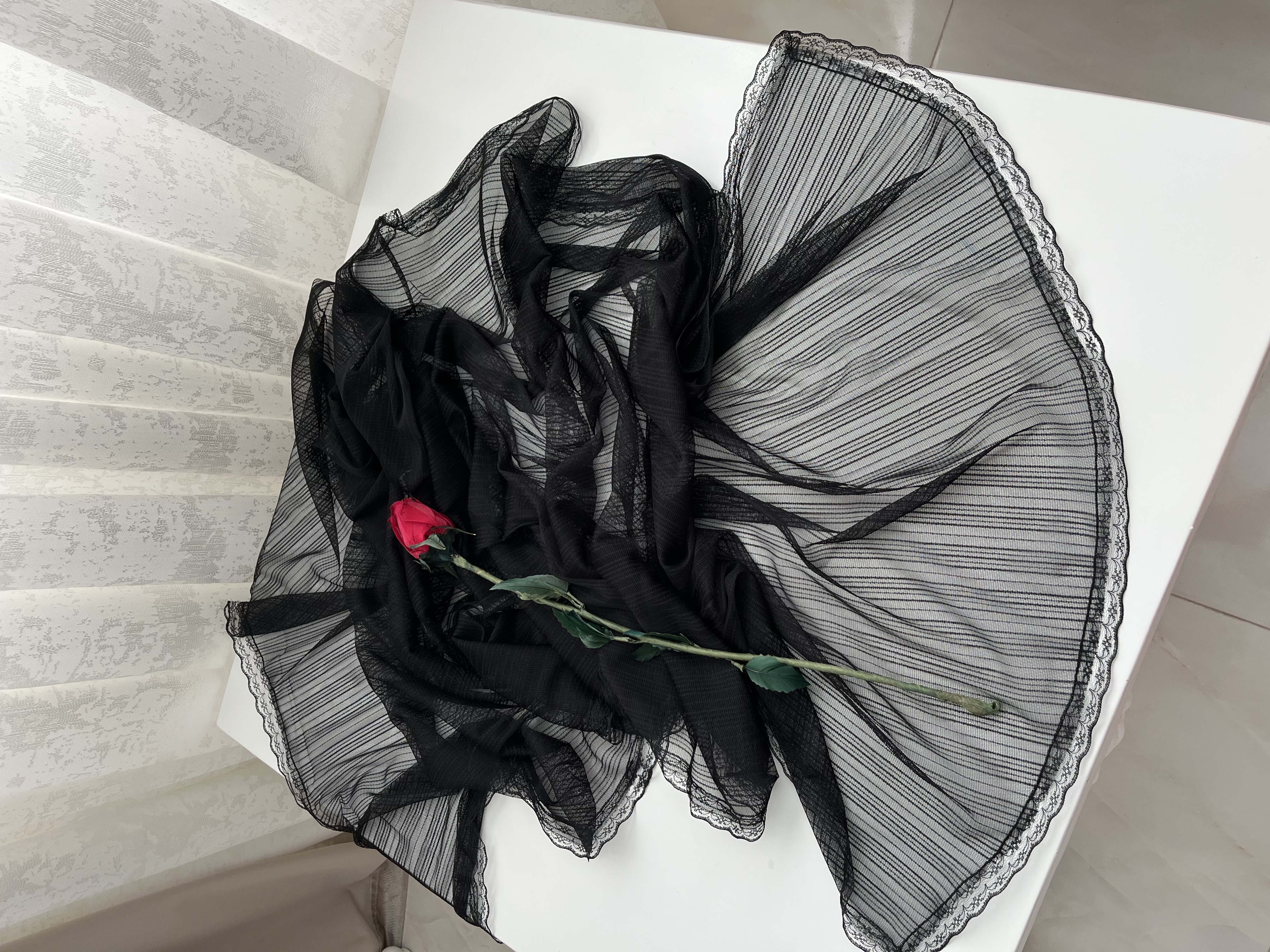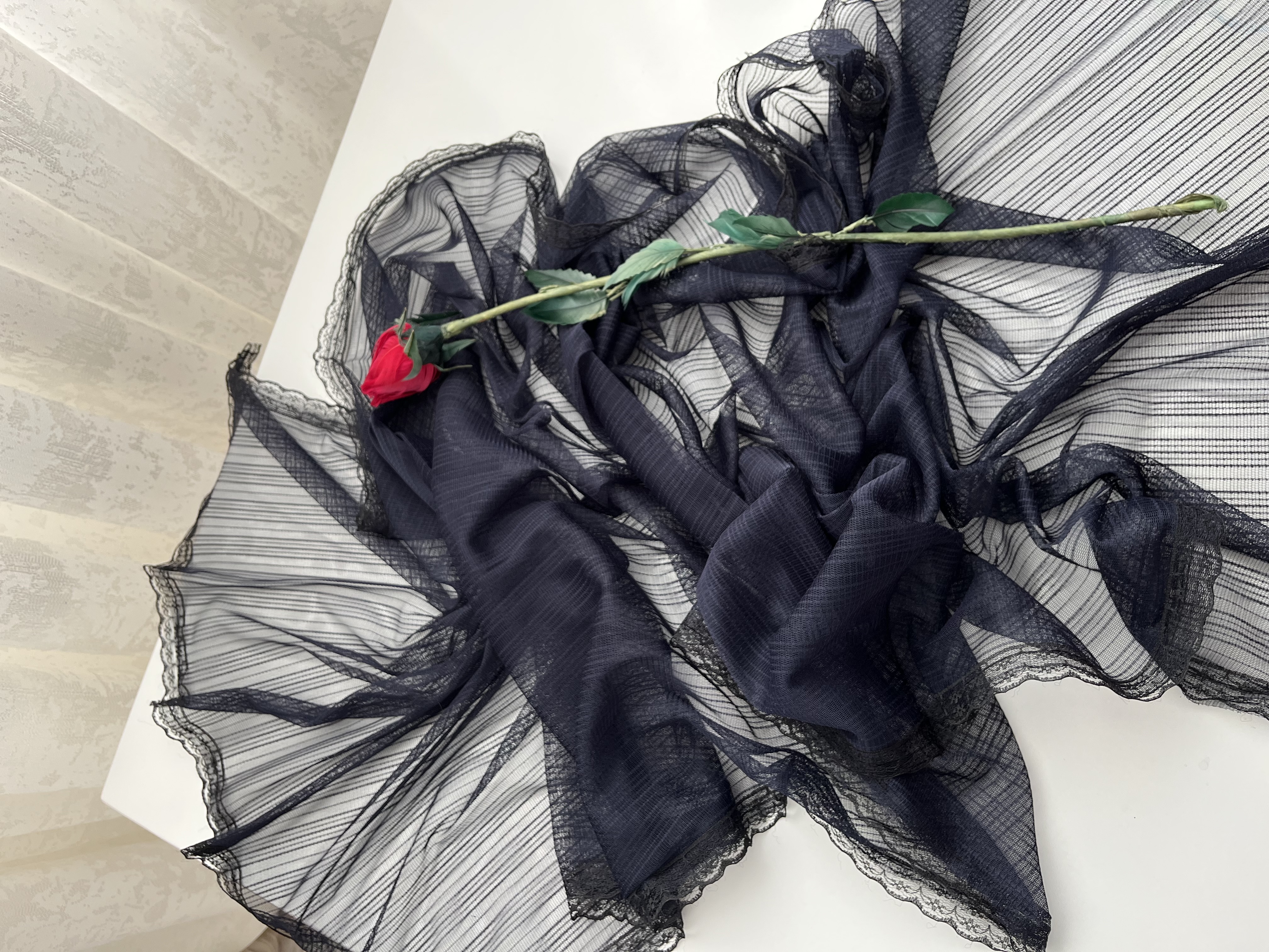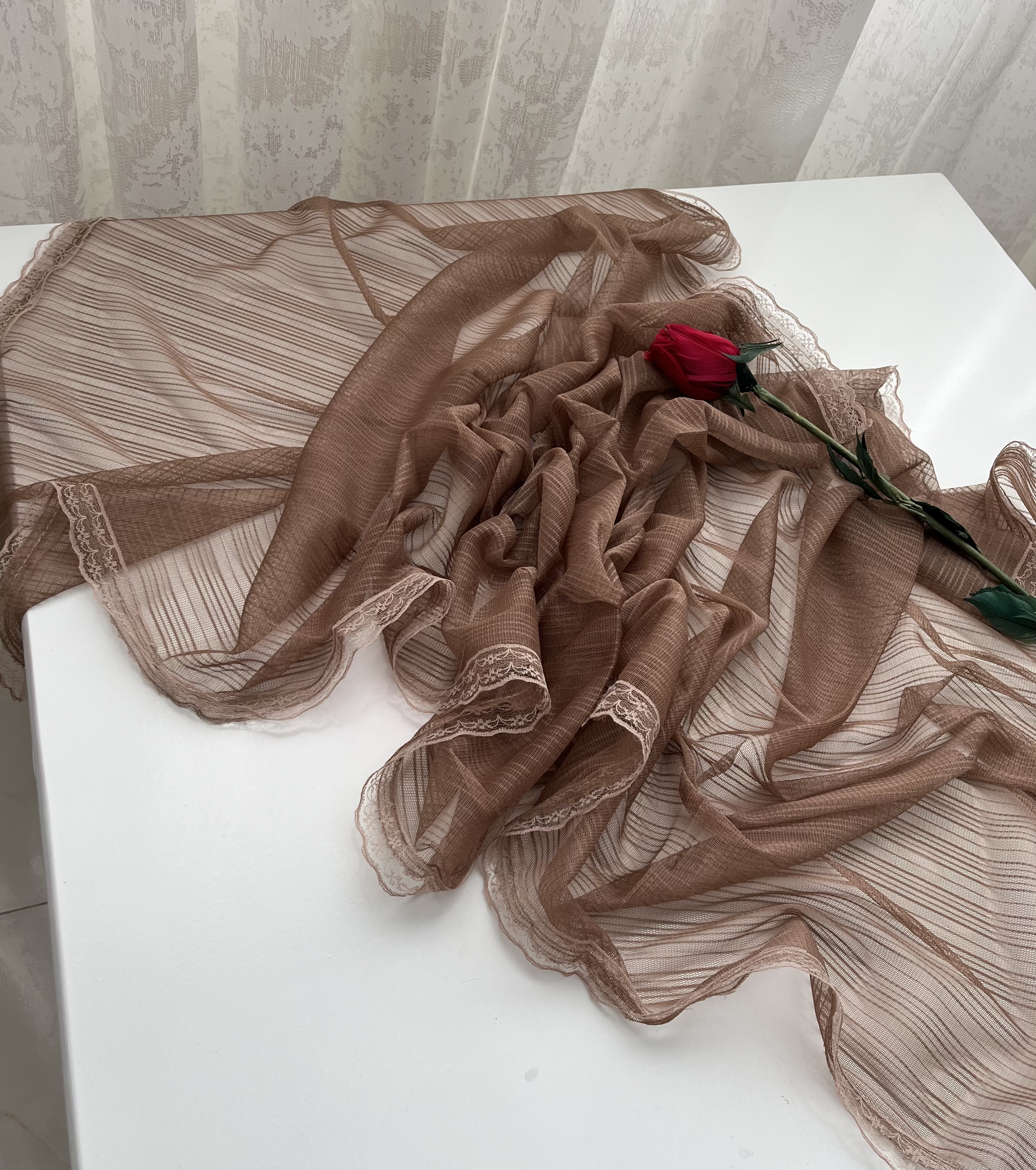- دور تا دور شال دانتل دوخته شده است.