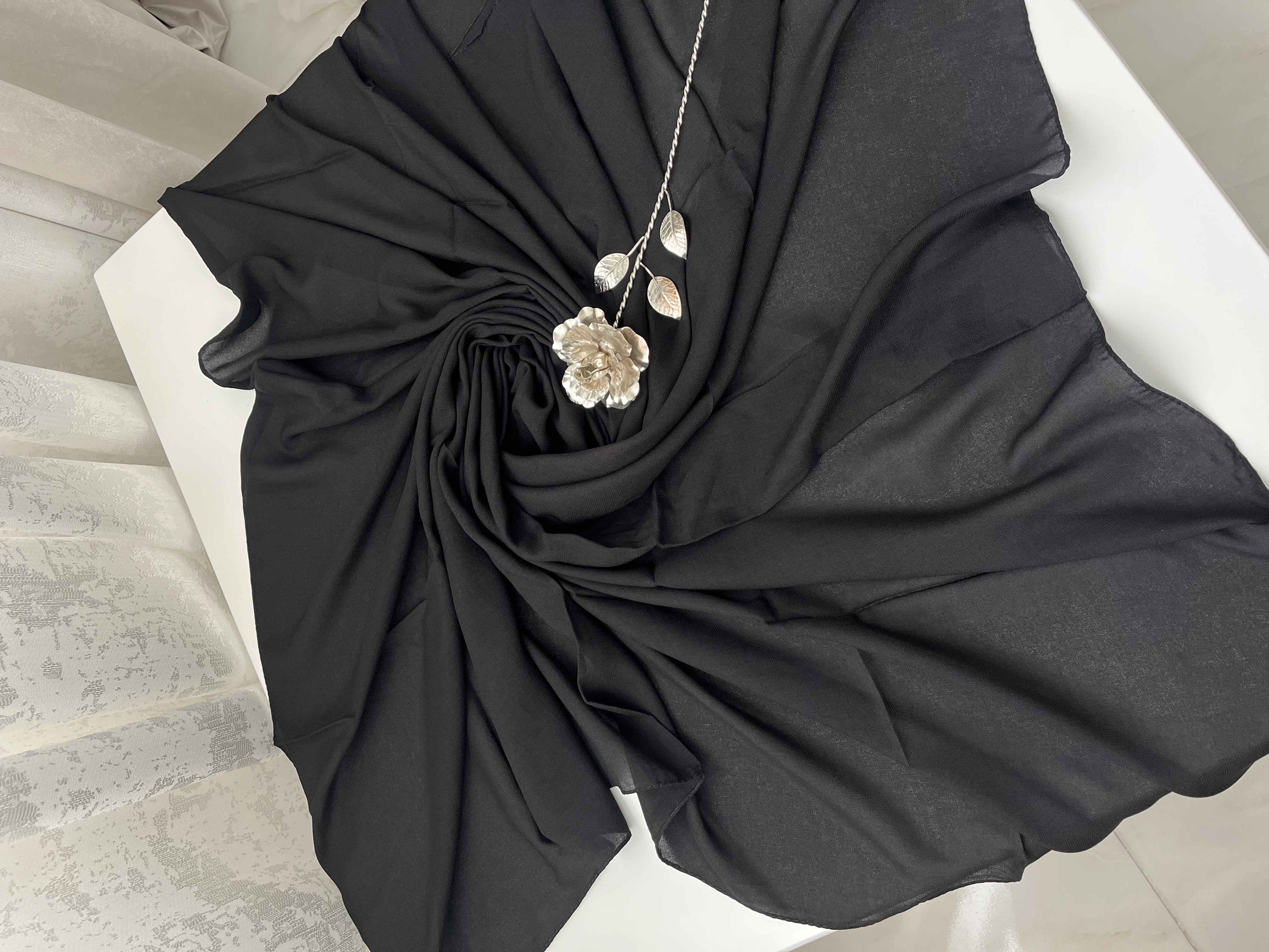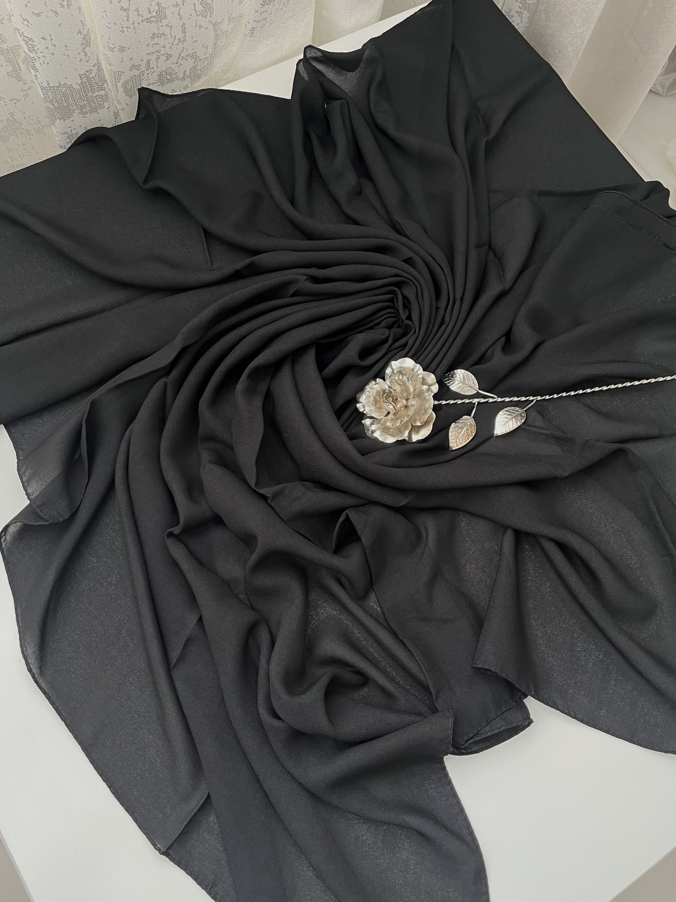 روسری حریر نخ مشکی مجلسی قواره ۱۲۰