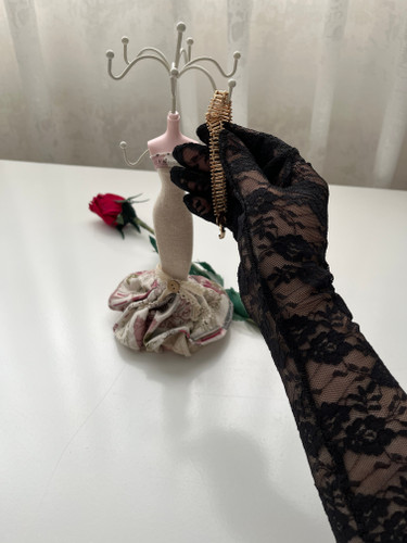 ناموجود دستکش مجلسی ساق بلند گیپوری - کرمی و مشکی