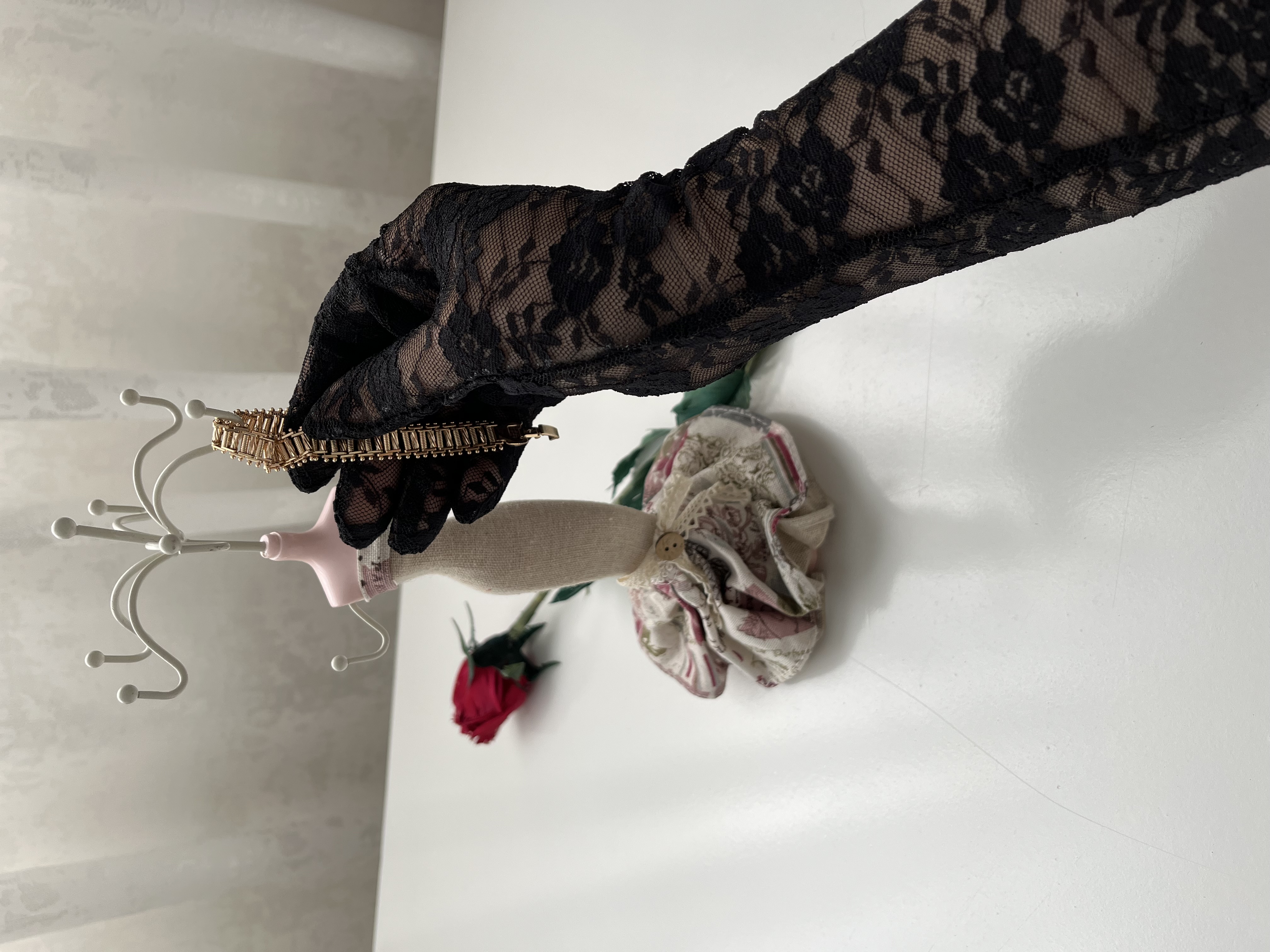 ناموجود دستکش مجلسی ساق بلند گیپوری - کرمی و مشکی
