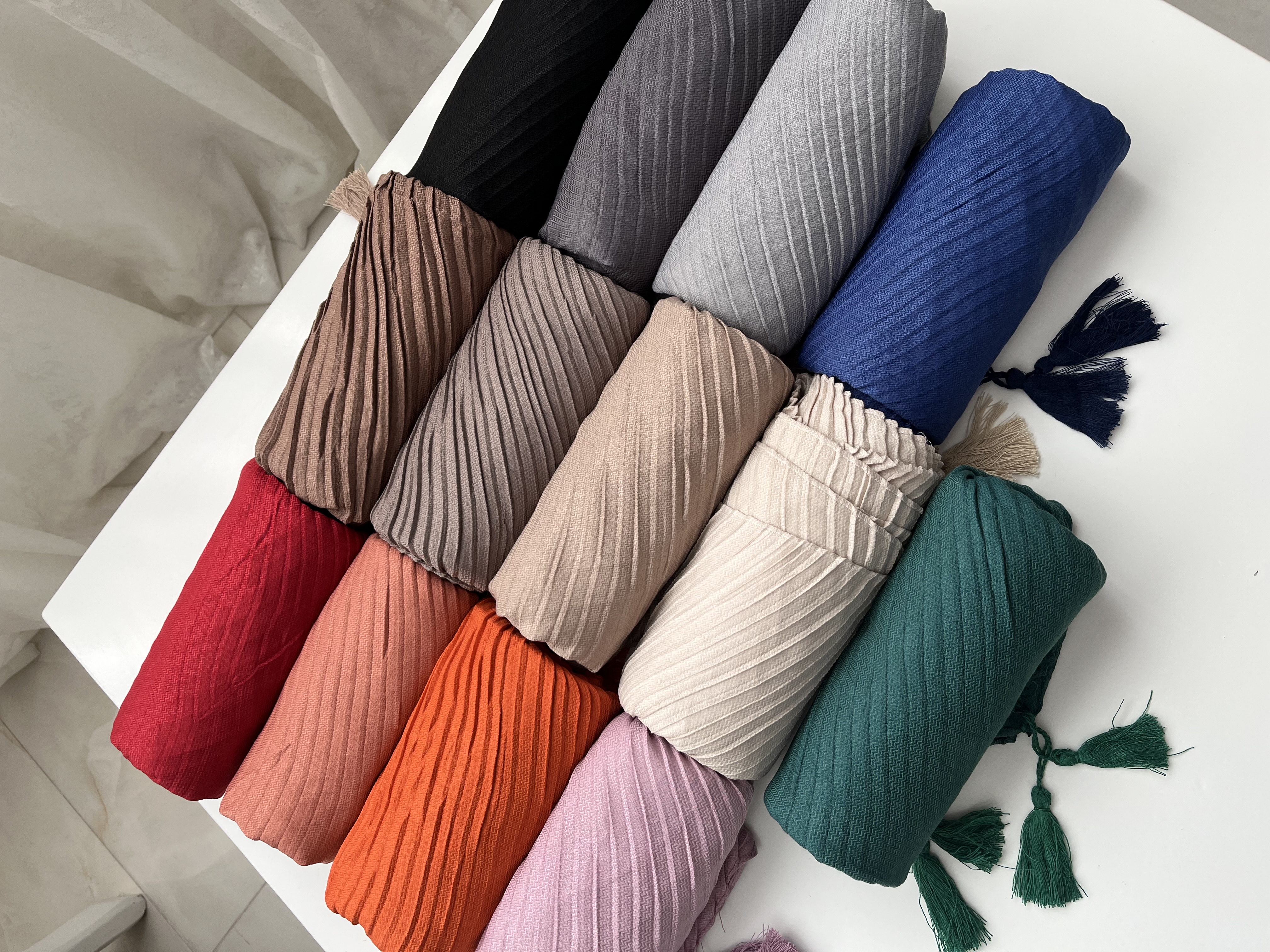 شال نخی چهارفصل پیلیسه منگوله دار - شال تک رنگ ساده پیلیسه