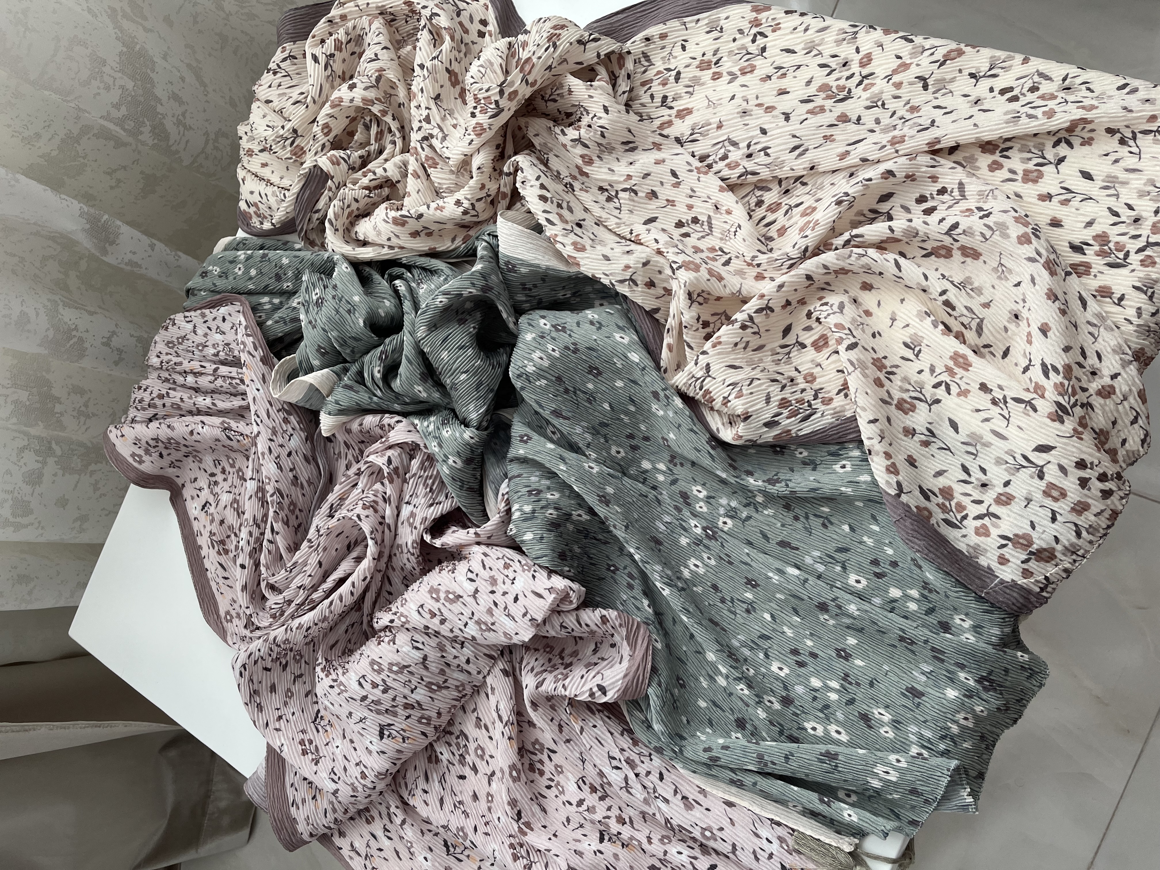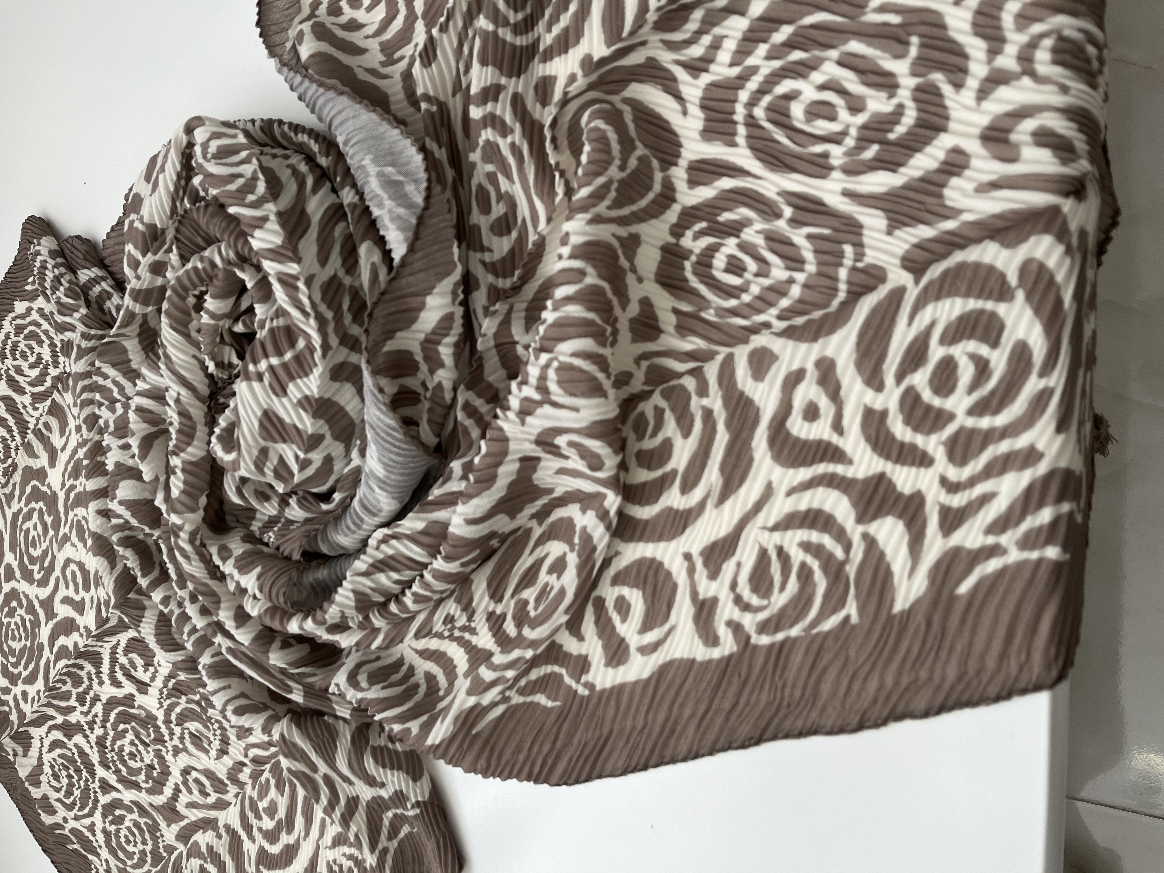 شال پیلیسه چاپی منگوله دار - پاییزی نرم و لطیف سفید سورمهای شیک و زیبا